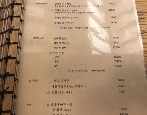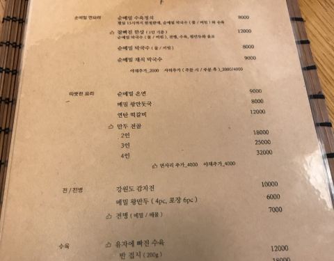 推荐一家韩国传统美食店加少量的中国特征的美食店《잘빠진메밀 2호점》。这家主打韩式饺子和白肉的美食店。店内环境优雅,服务态度良好。上菜速度相对于其他店要快很多,大概等5-10分左右就全部上齐了。3人份的分量等于3位成年男性的分量。味道鲜美,食材新鲜。相对于韩国饺子而言,这里的饺减子少了一些泡菜的酸味,增加了一些肉类的甜味。白肉的味道也是非常的正中。甜甜的肉味配上酸甜酱汁再加上韭菜,入口后即会体验到肉的纯味而且酱汁的味道会覆盖掉肉本身的辛味,提升肉的口感。而且这里的配菜与其他餐厅的配菜相比有着独具一格的味道。特别是泡菜与传统的韩国泡菜的味道相比,少了一种酸味多了一种甜辣的味道。喜欢品尝不同味道泡菜的小朋友,非常推荐来这里看看,保证你会喜欢上这个味道。最后这家店的价钱非常的公道。上面的菜系一共250块钱左右,内置Wi-Fi,希望小伙伴们会喜欢。