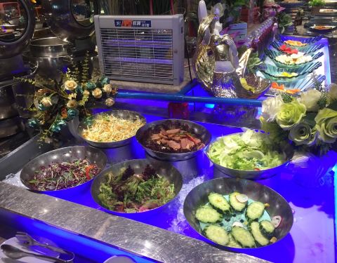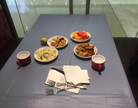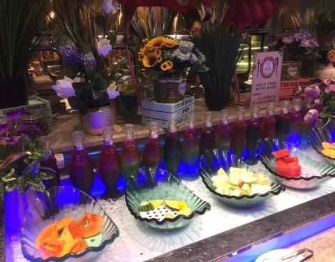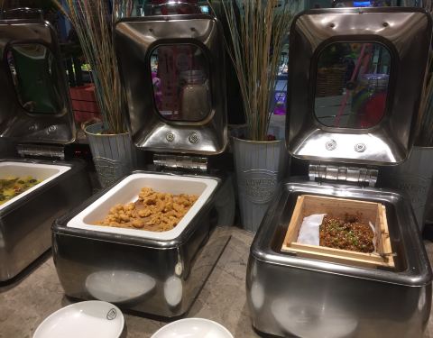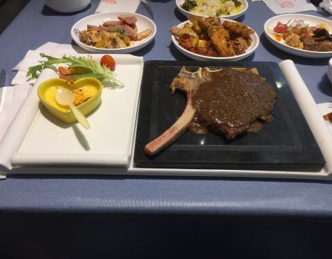 点完牛排后才以自助餐形式吃其他东西和水果,可惜很多食物都不及时添加,只剩下空器皿