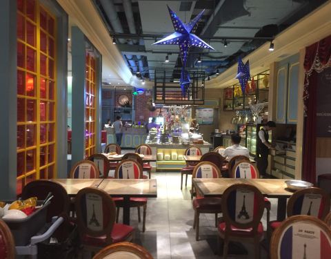 万达商场内有几家吃牛排的餐厅,走了一会,就试试这家。点完牛排后才以自助餐形式吃其他东西和水果,可惜很多食物都不及时添加,只剩下空器皿。