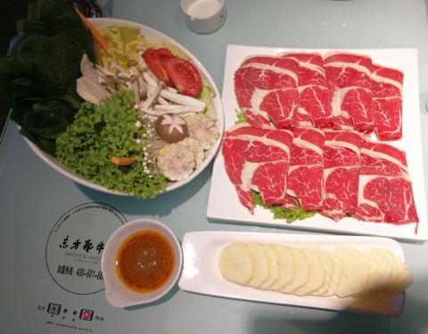 ...锅,每人一个小锅,桌子上洋气干净,牛肉好吃,肉嫩,要了两种,土豆在火锅里煮了以后面面的,也好吃