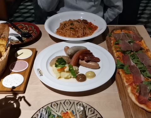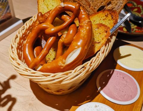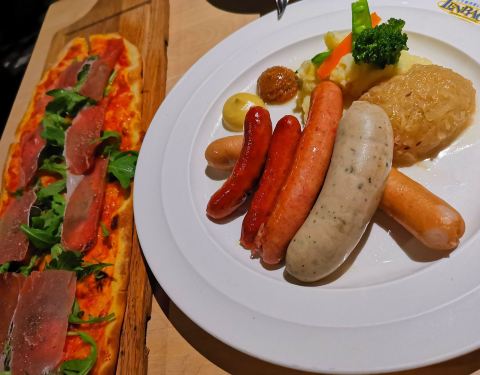 德国香肠!!!!一定要吃,就是奔着他们家的德国香肠去的简直不要太好吃,会爆汁的那种。而且德国薄饼也特别惊艳了。用餐环境也很好,装潢很漂亮也不会吵闹