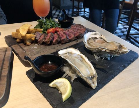 性价比非常高,一杯鸡尾酒才30多,在上海只能喝半杯,菜品味道总体来说还不错,前菜的西班牙火腿略失望,有点干,不鲜美,生蚝朋友觉得有点腥,我可以接受,牛排不错,嫩嫩的,啤酒肘子肉,忘了名字了,比想象中...