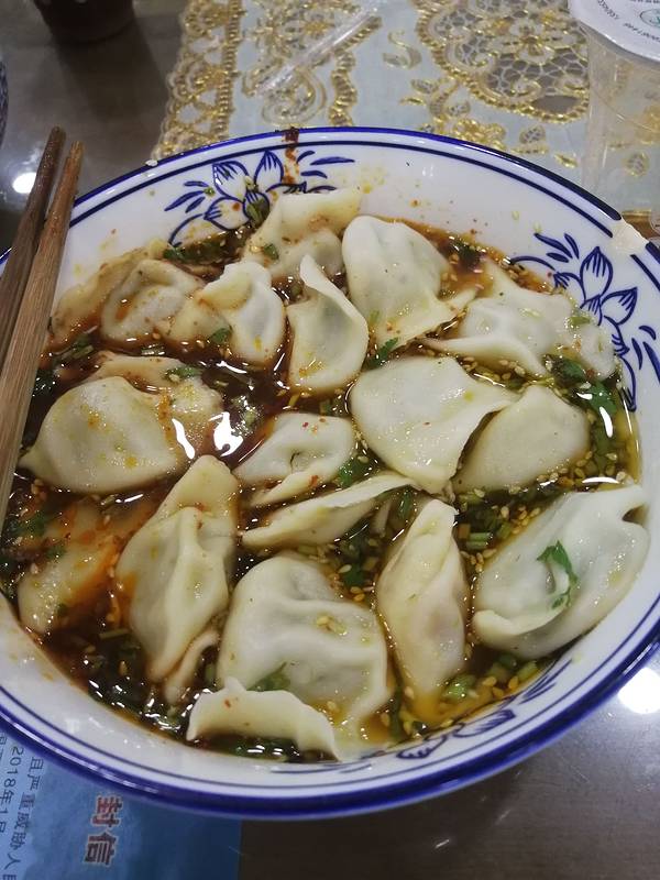 马茹酸汤水饺,也是老板推荐的。 水饺店的老板也很好。 不知道要多少,问我们想吃饱,还是尝尝,吃饱每个人4两。 不知道啥馅好吃,建议我们来杂馅的,每样来几个。 每样都😋。