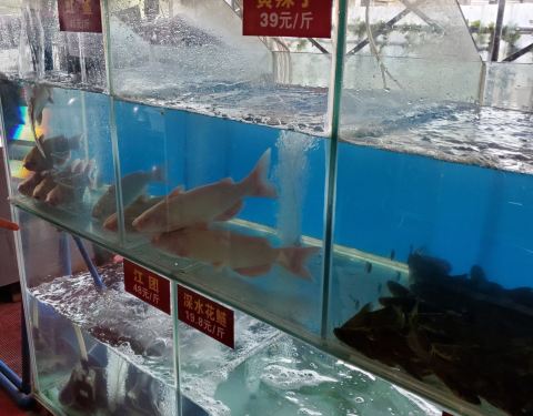 ...生意还可以,进来试试,点了雅鱼的一鱼两吃,味道不错,老板特意还把雅鱼头骨做了一个吉祥物送黑我们