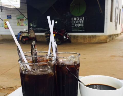 二对咖啡 “宾川县二对咖啡屋”是1985年创建的地方特色老字号。以中亚热带低纬度高原季风气候区的宾川古老朱苦拉咖啡作原料,采用越南咖啡壶传统手工工艺制作出来的精美饮品。朱苦拉咖啡生长在半山腰,海拔2100米,生态环境好,无污染,味道纯正,香味浓郁,在使用越南传统滴漏咖啡壶的过程中,对咖啡豆进行柴火加工炒制,使用独家配方调制,保持了咖啡的纯正风味,让香味更加浓郁可口。时至今日,二对咖啡不仅成为当地群众的理想休闲场所,同时吸引了大量国内外游客慕名前来。一杯冰爽醇香的冰咖啡足以抵挡夏日的酷热,一杯浓郁的热咖啡足以给寒冷的冬日带来温暖。
