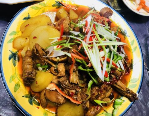 能在海拔4300米的高原吃上正宗新疆风味大盘鸡 馕包肉 烤羊肉 不要太幸福啦 环境也不错 吃完...