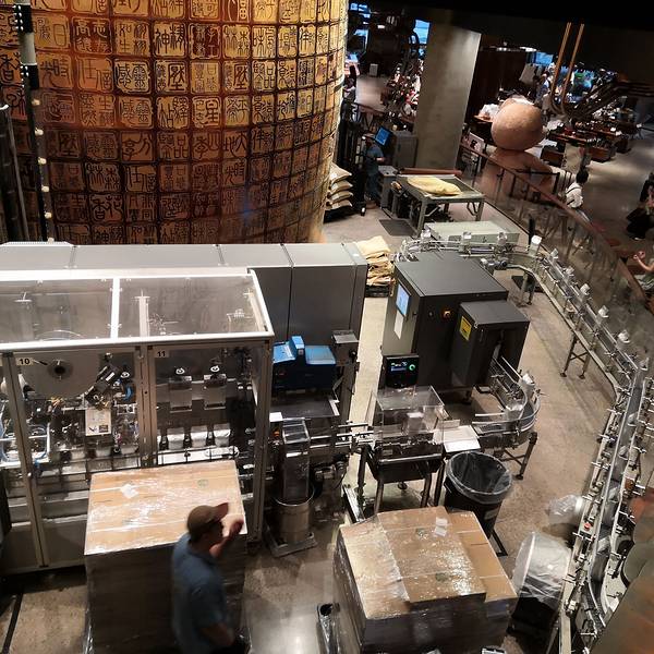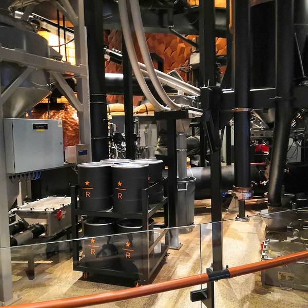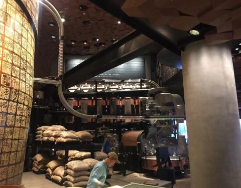 这不仅是一间星巴克旗舰店,也是一间咖啡烘焙工厂,让每一个顾客看到一颗颗绿色的生豆,如何经历工业化的烘...