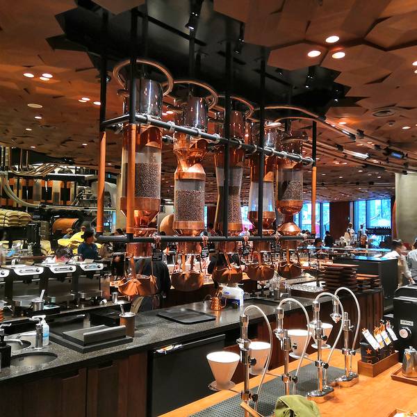 这不仅是一间星巴克旗舰店,也是一间咖啡烘焙工厂,让每一个顾客看到一颗颗绿色的生豆,如何经历工业化的烘焙与艺术化的充煮,直至成为杯中的香醇咖啡。沉浸式体验、丰富的咖啡冲泡选择以及限量周边设计,给你带来独特的咖啡体验。