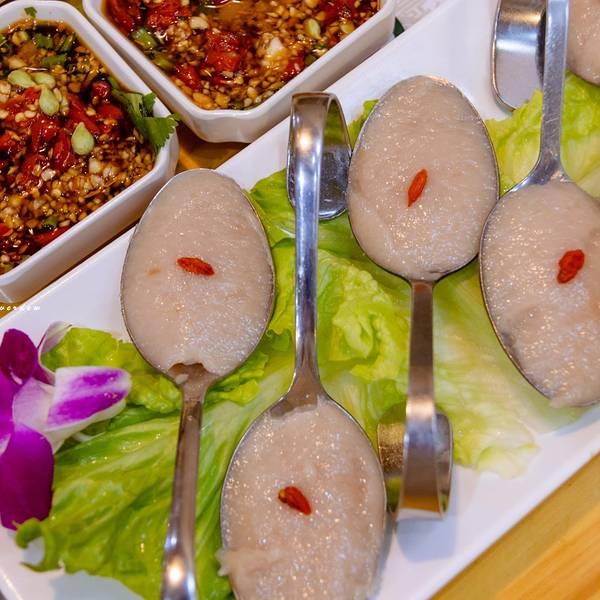 嗲嗲手打地马鲛鱼滑,不要太Q弹,新鲜地鱼肉手工打制,细细品尝能感受到肉的劲韧。推荐指数:五颗星。
