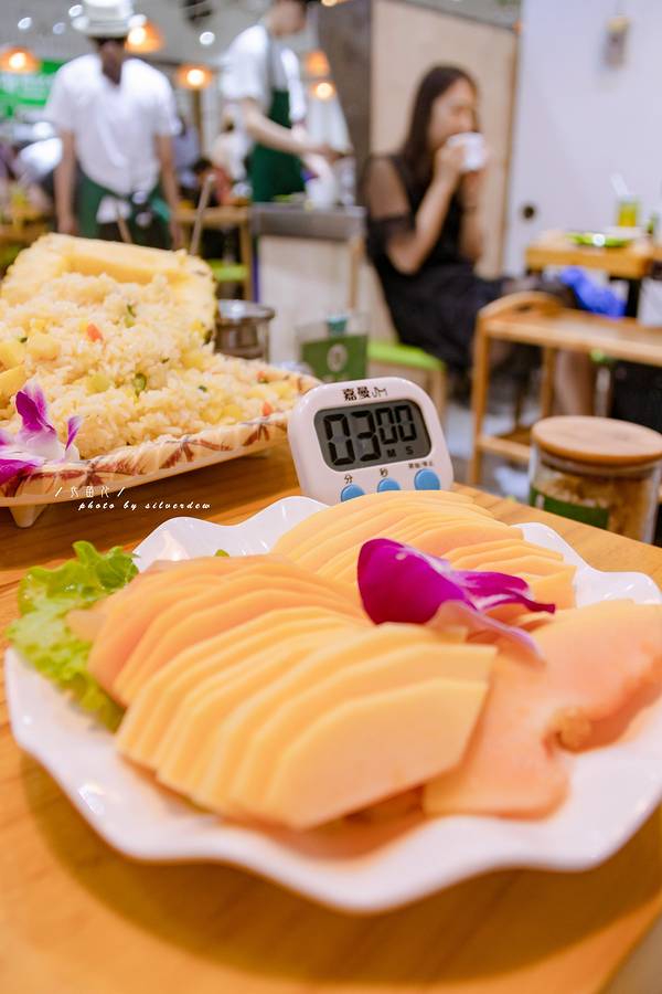 又到了开饭的时间,午饭选择了离小东海不远的大东海,也是三亚比较繁华的地方,三亚除了海鲜必吃,还有海南的椰子鸡,很早之前便听说椰子鸡是三亚的一大特色,前几次来的时候,也尝试过几家,味道还不错,当然也不能错过这次的美味之旅,来这里是因为看到门口海南的十佳地方菜这个标志,更有田亮,袁姗姗等明星到店,所以这次决定前去尝试一下——嗲嗲的椰子鸡。刚进餐厅,就看到右边堆着一大堆的椰子,这里的椰子产自东郊椰林,都说海南的文昌鸡,东郊的椰子林为海南的两大亮点,而这里就是用东郊的椰子水清煮文昌鸡,两个海南最美味的食材,放到一起,将会擦出怎样的火花,光想想都会流口水,我们去的时候老爷爷正在旁边砍椰子,这里的椰子水都取自这里,都是现做现砍,食材很新鲜。餐厅里面的装修风格充满了老海南的味道,简洁的木桌椅,干净的地面,柔和的灯光,进店后感觉很舒服,而且这里的工作人员态度真的是超级好,简直是无可挑剔,时不时过来问你有什么需求,需要加汤什么的,每次都会特意过来帮客人下放食材,几分钟后还会掐点前来捞取食材,不得不说服务真的超贴心,其实每次出行用餐,不管是在食物上还是服务上,都会影响着每一段的行程,然而今天的用餐第一步就超满意。椰子鸡的底料味道超棒,因为不太会调南方的蘸料,所以特意让工作人员帮忙调料,如果不太会调味的话可以让工作人员帮忙调,味道超赞~椰子鸡的底料全部由刚才在门口砍开的东郊椰子水为底料,一整个的椰子水导入锅中,香甜可口,从来没喝多煮过的椰子水,这次要来尝鲜儿啦~椰子水倒锅里煮熟后,就可以放置新鲜的文昌鸡了,工作人员很细心,专门过来帮我们倒入文昌鸡,不一会儿这份椰子鸡就可以出锅了,原来椰子鸡是这么由来的,原汁原味,绿色天然,海南景点特色菜系,出锅后的椰子鸡,入口即化,清淡可口而又香味浓烈,椰子烫的味道也超赞,浓郁的鸡汤里面带着淡淡的清香,终于知道这里的客人为什么这么多了,味道算是在三亚吃过最正宗最好吃的一家了。你们一定猜不到这个叫什么——嗲嗲手打马鲛鱼滑,Q弹精韧,放锅里煮两三分钟即好哈,煮太久肉质会变老,从锅里捞出来最好马上吃掉哈。一开始以为是南瓜,后来又以为是红薯,放锅里煮完,放到嘴里,也没猜出来是什么,最后问工作人员,原来是木瓜,原来木瓜可以煮着吃,煮着吃木瓜还是第一次,放锅里煮完后,居然是脆的,甜甜的木瓜味带着点淡淡的椰子味,很对味,每一桌都会有一个计时器,当工作人员把食材倒进锅里后,他会帮他上赏闹钟,等闹钟一响就可以吃啦~野生竹荪,这道菜必点,自古就被列为“草八珍”之一,营养丰富,香脆可口,滋味鲜美,超级喜欢这道菜,本来以为煮了很久,应该会变软,但是后来发现,不管煮多久入口后都是香脆可口的 这道菠萝饭记忆尤深,但是因为只顾得吃火锅了,所以这道饭还没来得及吃,一个工作人人员过来了,就问我们是因为这道菜不和胃口么,还说要帮我们退掉,连忙拒绝掉了,服务真的超贴心,绣球菌,被称为“万菇之王”,世界上唯一的阳光蘑菇,注重养生的朋友,这道菜必点,绣球菌每天有10小时的光照,特殊的生长环境与漫长的生长时间赋予了绣球菌极高的营养价值,可谓是养生滋补必不可少的食材。