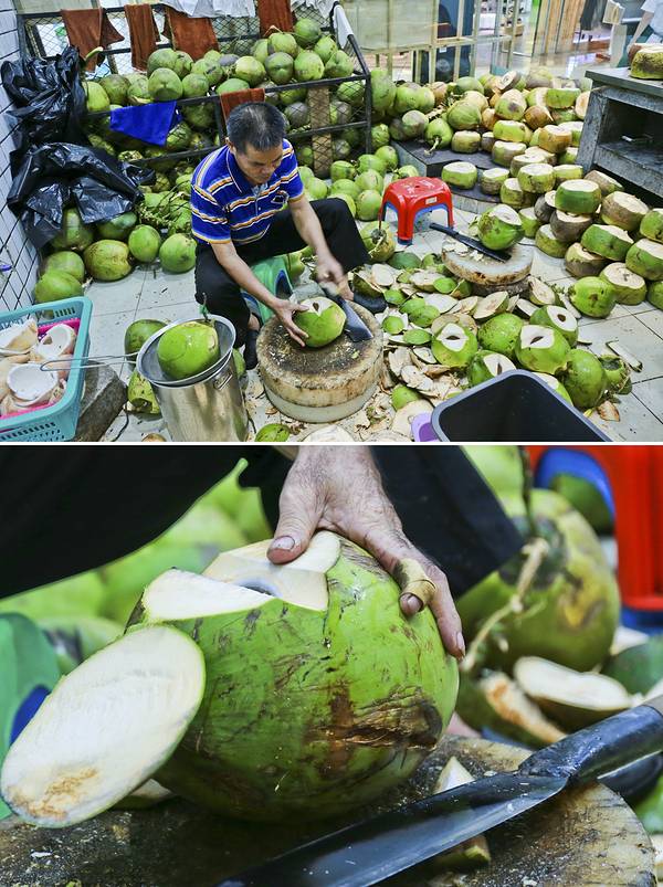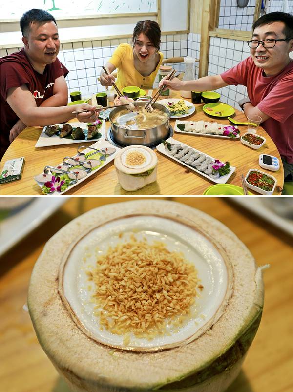 被评为“海南十佳地方菜餐厅”的嗲嗲的椰子鸡,也并未浪得虚名。正如那开椰子的人,手起刀落,只需3下便可将椰子打开,倾泻而出的不仅是那清冽祛暑的椰子汁,更是日复一日甘于体力劳动的初心。