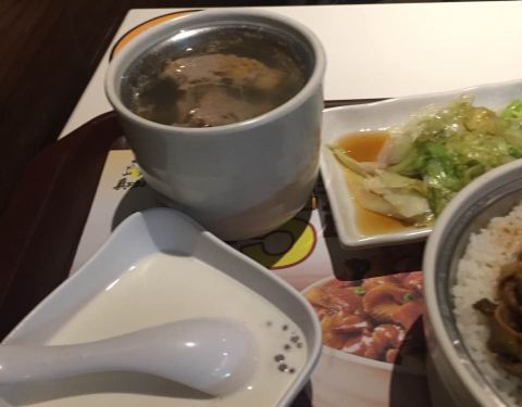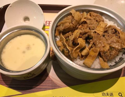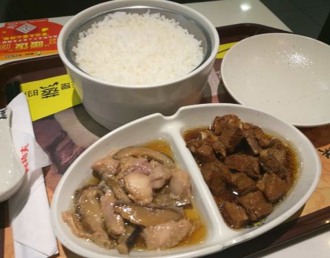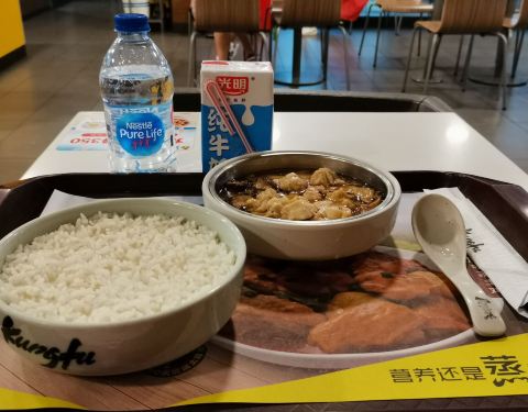 真功夫(新塘桥生活广场店) 地址:地铁4号线4号口下去就是 单位一年一次体检,这次选择了位于浦东塘桥的仁济医院,虽然有点远,但交通还比较方便,检查完了已到午餐时分,于是找到这家,主要是店家就在地铁四号线4号口进站附近,用完餐正好乘地铁回家。 特意选择一款简易促销餐,一份米饭,一份冬菇鸡腿肉,加上体检送的牛奶和鸡蛋,吃的饱饱的。蒸的米饭软硬正好,很香,量还有点多,吃不完。蒸出来的冬菇鸡腿肉很入味,酥软不柴,好吃。很实惠。