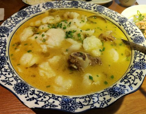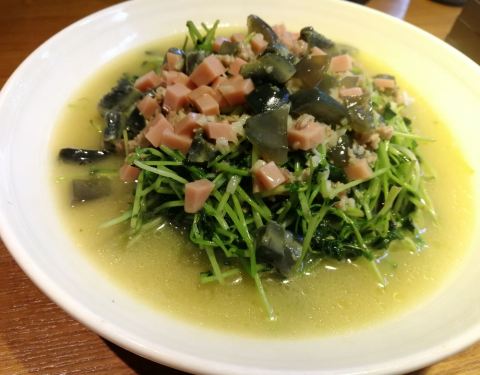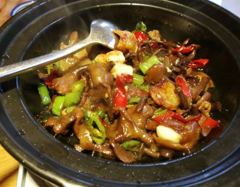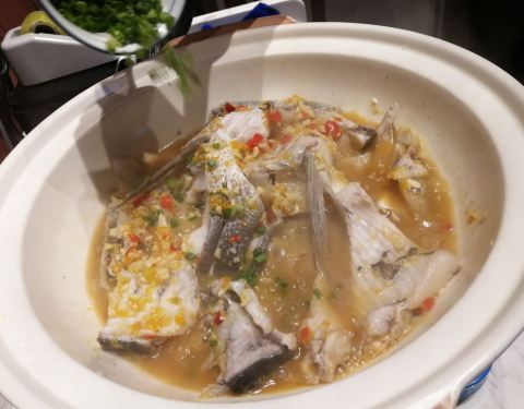 带着老妈在徐泾玩,路过这里看见大红灯笼高高挂很喜庆,那就一起进来尝尝。四点半后估计还没到饭头上故而店堂客人还不算多,整个店里好有民族风,湘江人民的风采,装饰很好看,一楼是卡座式,二楼是包房,特别有特色。二人就点了几个菜,推荐菜黄椒鱼头,新鲜而肉嫩,要了微辣,砂锅牛肝菌,菌类特别滑嫩,微辣,酸菜筒骨鱼,那么大一盆,骨头肉很大一块,鱼肉也是鲜美,再点了一个上汤豆苗,量大豆苗很嫩。整体微辣,吃的有点冒汗,服务员很热情给我们倒茶水,老妈说吃出在外地的感觉了,呵呵。