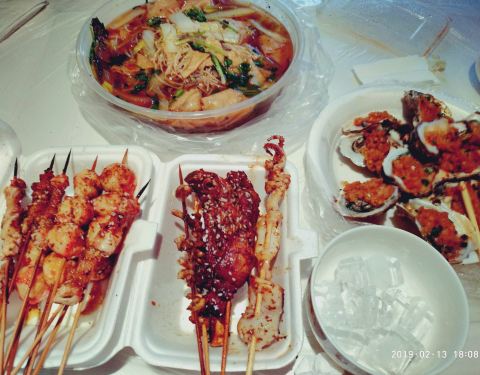 这次点了很多东西,烤鱼,十二个生蚝,肉串,虾丸,香菇,鱿鱼等等,最让人惊喜的就是烤鱼,吃过很多次烤鱼,第一次品尝煮的烤鱼,不过味道非常棒,分量也足,一整条草鱼,划算。