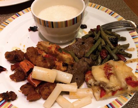 种类很少,可能吃的人也少,所以放出来的少吧,食物质量过得去,就是种类太不丰富了,菜十几道,汤2...