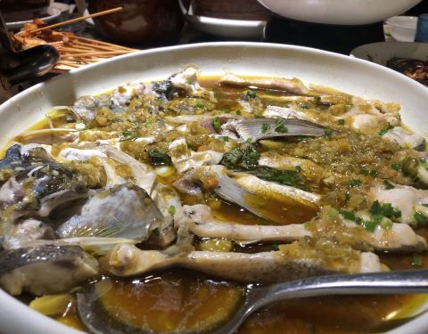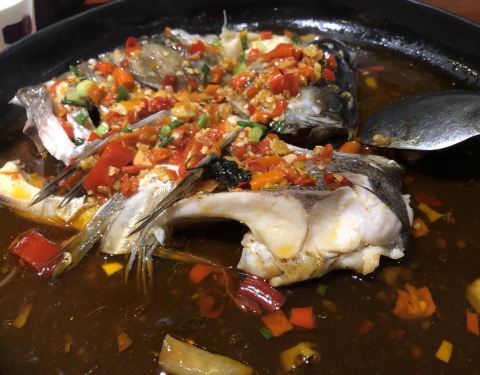 鱼头,这个是这里的特色,一定要趁热吃,不知道为什么后面越吃越辣了