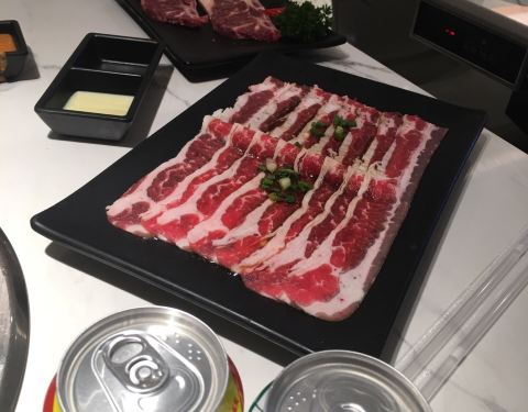 烤肉店在吾悦广场负一楼,点了鸡腿肉,梅花肉,吾桑格。菜品都很新鲜,服务员也会及时换盘子,鸡腿肉很嫩,也很入味,送的南瓜粥也很好喝