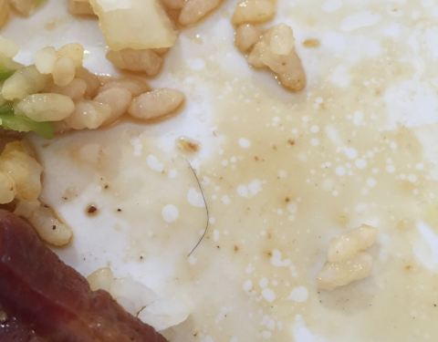 今天尤其喜欢吃卷心菜,竟然把肉剩下了许多,不过,吃着肉就发现了惊喜,附送男款头发一根…… 算了...