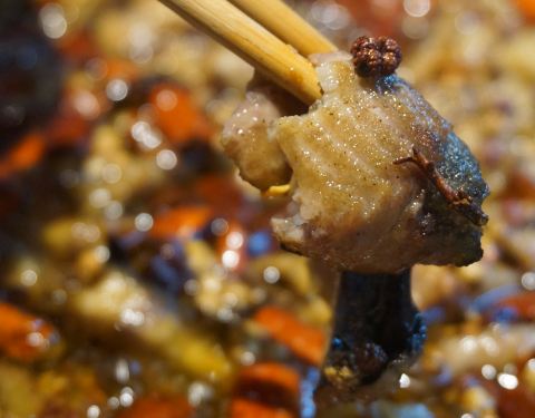 【爆辣小公鸡炒面】,注意名字中爆辣二字,没有在和你开玩笑。如果你抱着“它应该是一份普通的辣炒面”这样的心态去吃,那肯定会收获一份惊喜(微笑),或是get了街头艺人的喷火技能... 炒面的卖相很有食欲,闻着就特别香喷喷了,很有烟火气的那种!吃到中途就算辣到鼻涕眼泪一起流,辣到胸腔内火烧火燎,但依旧放不下筷子,总想再多吃几口。【壹号馋嘴蛙】一份里有足足四斤牛蛙,每只都选择中等大小。这样既保证了较大的个头,可以吃到肉厚厚的大腿,也让肉质嫩嫩的不会太老。【豉椒牛蛙】里浓浓的豉汁裹满了每一块儿蛙肉。如果觉得馋嘴蛙太辣,这道牛蛙菜就是你的首选啦,只到微微辣的程度~