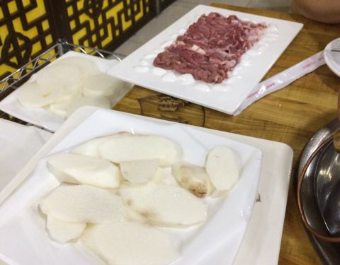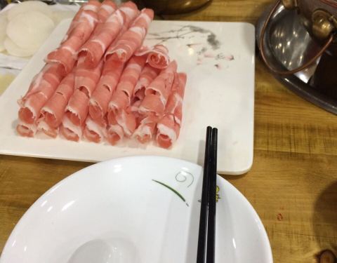 这家店门脸儿真的不太引人注目,成人保健的大招牌倒是很醒目……馆子在二楼,中午时分食客不是很多,略显冷清,老北京炭火锅吃着就是情怀,点了精品羊腱子和羊腿肉,羊腱子肉不错,很有嚼头,劲道,其余的素菜和冻豆腐都不错总之中规中矩