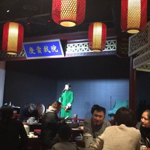 4:30左右就来排队了,去的比较早,人也比较少,下午5点就可以就餐了,1.牛蛙很嫩,味道不错,2.虾仁很Q弹,配上沾的孜然,正好缓解了油炸虾仁的腻,3.特色土豆丝,与家常做法不一样,酸酸的,脆脆的,还有孜然的...4:30左右就来排队了,去的比较早,人也比较少,下午5点就可以就餐了,1.牛蛙很嫩,味道不错,2.虾仁很Q弹,配上沾的孜然,正好缓解了油炸虾仁的腻,3.特色土豆丝,与家常做法不一样,酸酸的,脆脆的,还有孜然的味道,推荐,4,炖梨不怎么甜,但是放了银耳,红枣与桃胶,养颜必备,戏台晚上6点开始,挺好的餐厅