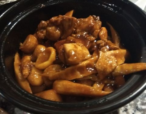 蘸上搭配的酱汁儿,真是太好吃啦~~||:栗子鸡:||