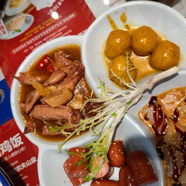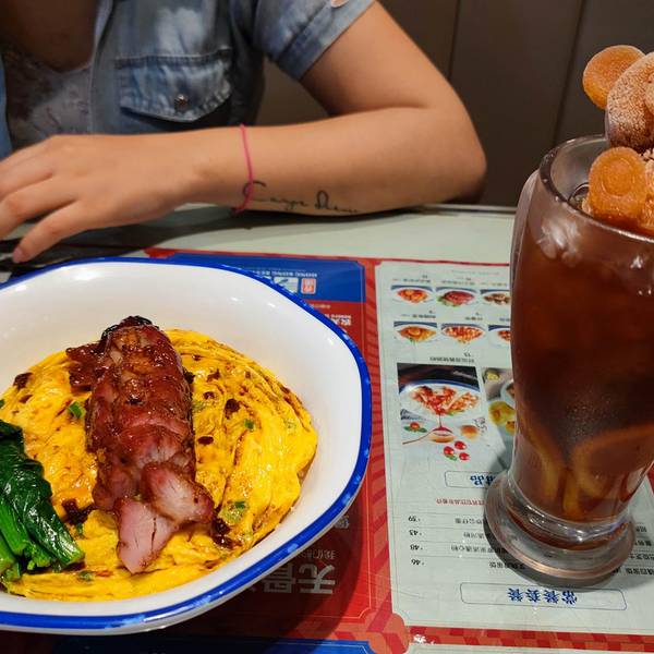 黯然销魂饭 ✨叉烧软糯又特别的入味,蛋黄流入秘制的饭里,味道相当棒。 小熊冻柠茶 ✨奶香味挺足,加上小熊冰块,特别的清爽小吃拼盘 ✨点一个小吃拼盘,鸡翅、小鱼丸、小香肠、混酱肠粉,可以多尝尝各种美食。...