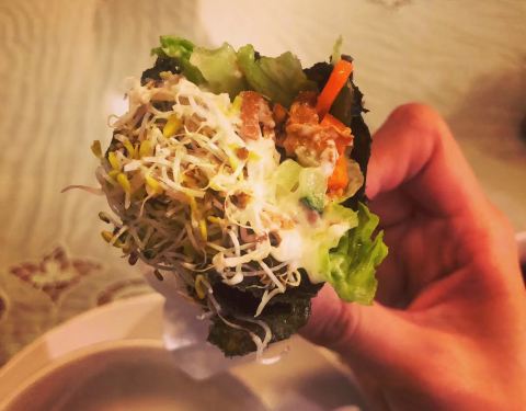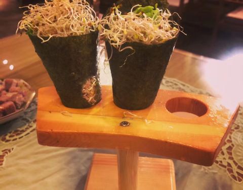 #让人处处有惊喜的素食馆 一个手卷三种不同滋味 麻婆豆腐春卷 蛋糕味道的芝士番薯。每个细节都处理的很好,很喜欢这里