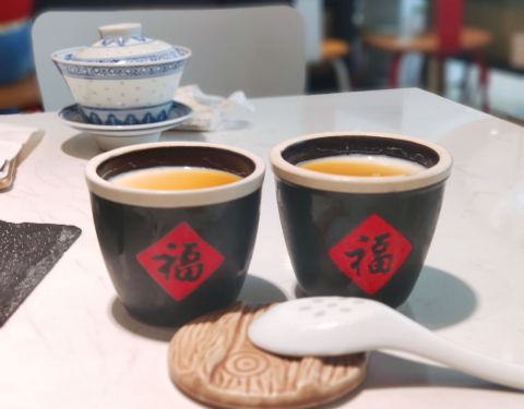 位置在东海泰禾广场,找到肯德基,旁边的扶梯上二楼,小龙坎楼上。 鱼皮加入了泡椒腌制,没有鱼腥味。放在酸菜鱼里,变得滑溜溜的。 八仙凉面,2小碗,迷你版的。摆盘超可爱啊。凉面做的很好,面很筋道,调味也恰倒好处。喜欢呀。 酸菜鲈鱼,一大份。上面铺了满满的鱼肉,浇了热油,很香。桌面上有提醒,先喝汤再吃鱼。 鱼肉很入味,切成薄片,爽滑可口。配菜也挺丰富的。 木耳、莴笋、白菜。 红润。其实就是冰粉啦。里面还加了葡萄干和奶茶。吃过最好吃的凉粉。而且颜值也是超高的。 这家店环境挺好的,因为是明厨的关系,看着很干净整洁。 服务的小姐姐态度很好。用餐过程会帮忙续茶水。 茶水是菊花茶,温热可口,感觉商家还是很用心的。 很满意的一次体验。