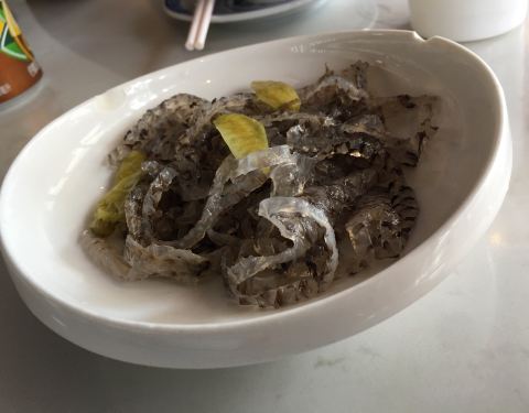 菜品: 开胃鱼皮 鱼皮太软烂了,一点都不Q,口感和味道都比较一般。鱼肉很嫩,味道觉得有点淡