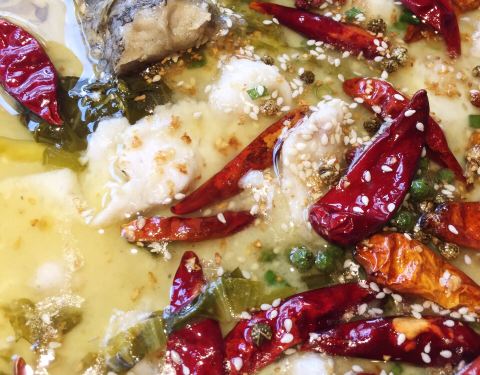 『荣耀走场』 朕已到达八鲜过海东海泰禾店现场 最近这记性差点都忘了发点评了 店址就在小龙坎火锅楼上好像也只有他们一家 落地大窗光线充足整体很舒适 「招牌酸菜鲈鱼」肉质鲜嫩辣度适中值得推荐 「开胃鱼皮」量少鱼皮偏软不够脆,一般 「口水鸡」可以说百吃不厌每次必点 「红润」饭后必备甜点强烈推荐 整体服务不错,上菜速度有点偏慢,继续加油,退朝!
