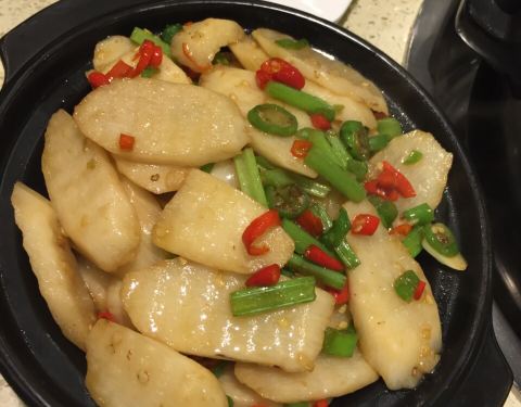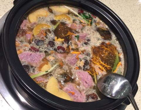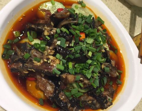 感觉不错的一家餐厅。晚上人不是很多,可以安静吃饭的那一种。服务员很热情也很实在,服务很周到。 非常推荐极品菌汤锅。一大锅非常实在的菌汤。各种菌菇在一般火锅店只给很少的量,他家给一大堆,吃不下都不好意思浪费。味道很鲜,锅底就可以当一道汤来喝。鲜黄牛肉就是比冻的强,放入锅中煮一会儿就好,不用炖,肉质就很嫩很有弹性,把鲜牛肉可以当主菜吃,吃饱。吃饱再喝汤,感觉很舒服。 蒜蓉黄瓜很清口,如果是吃辣的锅底,这个菜可以解辣。 三色牛蹄筋属于肉菜里面比较清爽不油腻的菜,有肉有菜,量也很多,一个人吃的话,配碗米饭也就饱了。 红糖锅盔非常喜欢,既是主食又可以当点心。甜糯米裹着红糖馅儿,外面油炸过,热的吃很香也不粘牙。凉了也可以当点心。 卤香牛尾一般,做得有点儿硬,不过用料倒是实在的。 整体装修、服务和菜品都不错,比较适合家常来吃。