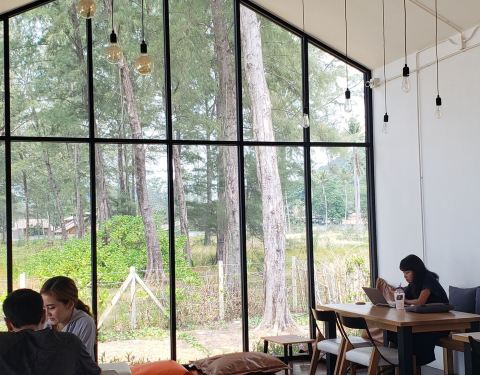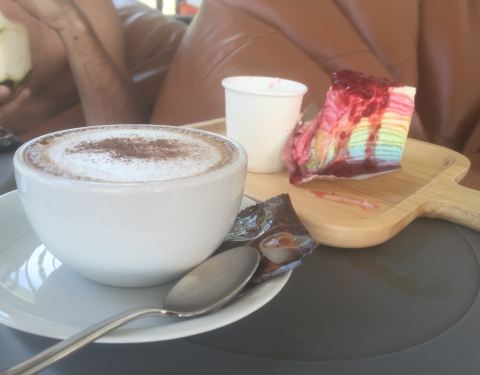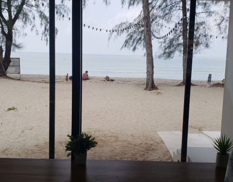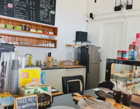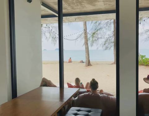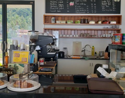 不大的店,就在海滩边上但是离道路很远。咖啡和蛋糕都很正,居然有蓝莓酱彩虹千层。(请原谅都吃完了才拍照)。感觉很日式风格,就是非常极简而且甜点赞。物价来说,新鲜椰子比咖啡贵:椰子一颗90泰币,卡布其诺7...