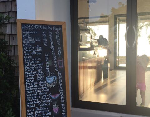 Wari coffee 就在象岛孔抛海滩的路边,店招比较醒目,咖啡店离路边大概50米,停好摩托车后进店,店很小,装修风格很简单,就是所谓的ins风,店内座位不多,海边可以坐坐,点了两杯咖啡小坐,安安静静的看海,拍照发圈装❌。