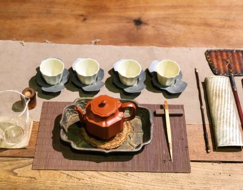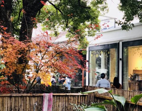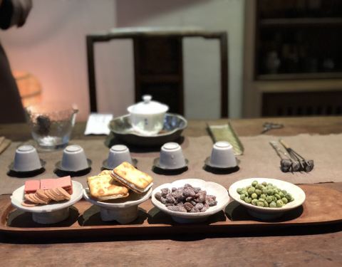 凤凰御元创意园里的茶馆。一家蓝莲花,一家杭州茶舍。 蓝莲花包厢费+茶位费。 想想还是这家。 外面看环境很有味道。灰瓦白墙木竹篱笆。茶配四碟五种茶点。麻辣青豆、糖渍葡萄干、葱香牛轧饼干、山楂糕、山楂片。 桂花九曲红梅188双人套餐~桂花味不明显,茶香还是蛮浓郁的。 桌椅摆设都是老家具。