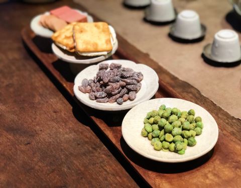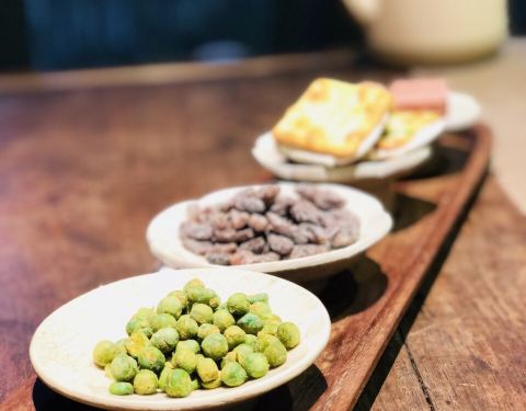 麻辣青豆、糖渍葡萄干、葱香牛轧饼干、山楂糕、山楂片。一家蓝莲花,一家杭州茶舍。 想想还是这家
