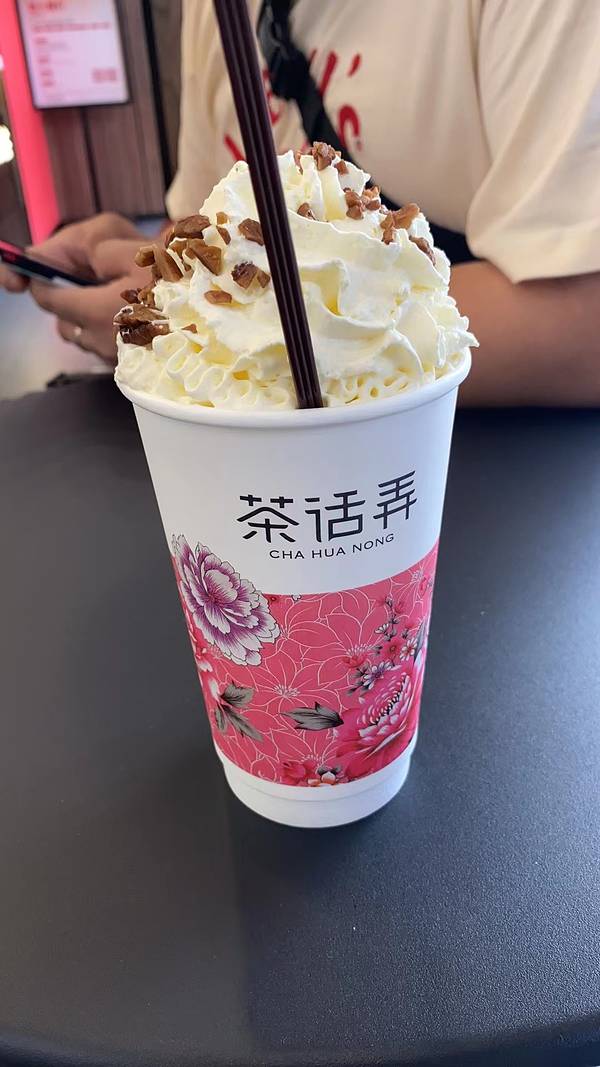 【茶】在中国的历史长河中,占据了重要的一席,可以说算是国宝级别的饮品。当然,今天我们不是来介绍茶叶或者说茶坊的,今天我要告诉大家的是这个有关于茶的饮品店——茶话弄! 茶话弄位于西安市最繁华的美食街主干道上,想必不用我提醒大家也知道这里是回民街。回民街上美食店众多,想要在里面开一个非传统美食的店铺是很困难的,就更别说做饮品了,毕竟在外面到处都是饮品店,来回民街不喝酸梅汤、石榴汁等带有招牌性质的饮品,却来凑你家热闹? 所以说刚开业的时候,其实大家对他家的店都不抱太大的希望,可茶话弄成功的地方就在于他真的做到了,在这样一个以传统美食为基础的商业街,他做出了自家的风格。成为了回民街上最为火爆的精品店~ 这边交通非常的便捷,乘坐地铁二号线到钟楼站下车,c口出来穿过下面的长廊,鼓楼的方向过去就是回民街的入口,然后顺着主街道往西羊市方向走,店铺位于你的右手边,所以靠右前行就能找到了。 整个店铺拥有两层, 一楼的面积不大,整体装修风格偏向于素色,布局主要是点餐台,然后有一面画满西安13朝历史的墙壁也是大家喜欢打卡的地方,喝着饮品的过程中了解西安的历史文化,不得不说创意很棒~ 二楼的空间就非常大了,我一般就喜欢上来找个靠窗的位置坐着喝一杯魅力拿铁,带上耳机放一首舒缓的民谣,看窗外回民街上人潮汹涌,感受闹市中的安静祥和 店里的饮品有很多,所以这里我把菜单给发上来,大家可以自己看看菜单,大致了解 一下店里的饮品分类。 店里的价格比较实惠,虽然是在回民街主街,但定位的价格都在13到30之间,一般来说都是16、18这样,而且好喝的几个饮品都是20块钱以内,很实在 而店里我比较喜欢的饮品有两款,一个是魅力拿铁,另一种是桂花引。特别是今年茶花弄调整了饮品配方,升级后的桂花引,口味更加的柔和顺滑,一口饮下香味经久不散,重点是价格才15元一杯,人民币哦 魅力拿铁定价是17元一杯,奶油上撒上巧克力粉,记得买一根猫爪饼干来舀着吃,特别的有感觉 茶花弄的工作人员虽然都是很年轻的小伙子、小姑娘们,但他们却没有那种高傲之气,对待客人特别的温和服务态度真的是无可挑剔,为茶话弄点赞,希望他们越做越好,在西安能够开更多的分店