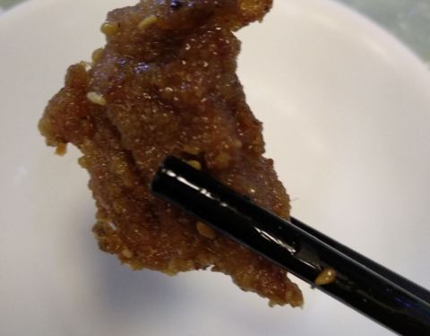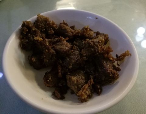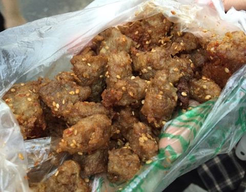 牛街清真超市的对过 就是洪记小吃店 又是个门面超级大的老字号餐饮 有供应早点 也有各种特色小吃 外卖窗口的生意极好 需要排队 冲着它家牛肉粒去的 肉类品种也超多 什么酱牛腱子 酱牛口条 酱蹄髈 牙签肉 鸡肉粒等 牛肉粒 40元/斤 称了点尝尝 这里的牛肉粒真是特色 说白了 就是牛肉串的味道 只是把那根棒子拆了 变成一粒粒的牛肉 加了孜然的味道 可以当零食 可以当配菜 完美 牛街是个好地方 跟驴打滚一样的痛 没能把它带回魔都~