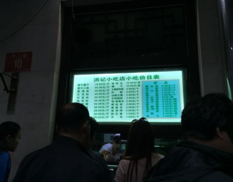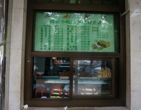 - 洪记小吃店里也是人满为患。价格不便宜,性价比也不高。服务一般,忙不过来。提前交钱。白开水一样