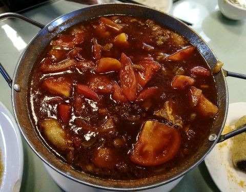 靠近牛街北口,各种小吃,门口排队的人很多,店内一直爆满,味道还是不错的。我们点了羊杂汤、苜蓿炒肉、西红柿炖牛肉、锅塌豆腐,火烧、艾窝窝、驴打滚等,三个人吃的挺饱。