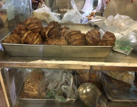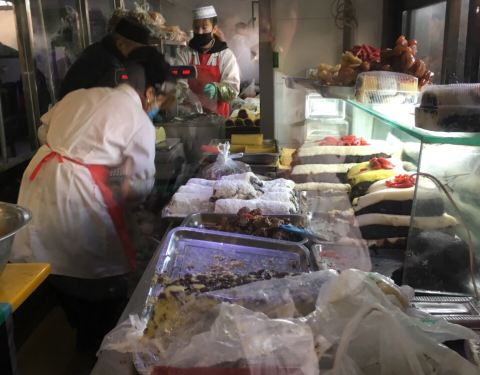 早晨路过牛街,看到一大早这家店门口就排了很长的队, 于是挤热闹排了起来. 这里有很多面点和熟食, 我们买了火烧\杂碎汤\牛肉包, 驴肉火烧6元一个很好吃, 比2元一个的单火烧好吃; 杂碎汤黑黑的吃不惯; 牛肉包味道不错, 里面还有汁水, 可惜买了三个,三个全是破的.另外还有很多买年糕等,但做工看上去比较粗糙,就没尝试