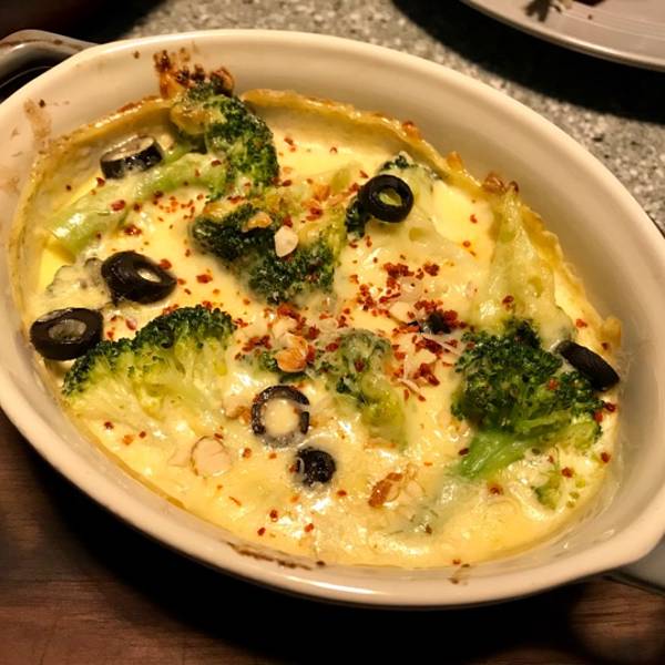 装修美式风格很受外国人喜欢 餐前面包 类似越南的法棍,温热的 外脆内软,少有的好吃 T骨牛排7分熟,骨饲牛排味道很纯正,芝士现烤现切在牛排上,很有特色 平时都吃沙拉,这次来个不一样的蔬菜,香焗西兰花,意外...