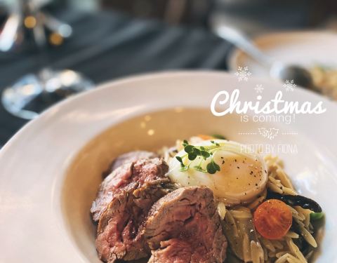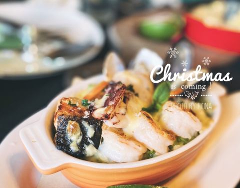 【4 PEOPLE】從沙坡尾店到瑞景店,跟JUICY一樣,不管開到哪裡,本寶寶就是它家的忠實粉絲。⭐⭐⭐⭐⭐ 瑞景店位於瑞景商業廣場一樓,今晚正好有跨年活動,這時候應該還沒結束。這回我是聖誕節前夕過來的,聽說聖誕出了新品,怎麼能不來試試嘛。 聖塔塔沙拉,食材顏色搭配得很好看,淋的是油醋汁,開胃清爽。是拉差燴飯,米粒金黃,色澤誘人,看著就很有食慾,口感濕潤,我很喜歡。烤牛肉菌菇意麵,飯和意麵傻傻分不清楚,用的是米粒形的意麵,很特別,搭配低溫烤製的澳洲進口牛肉,菌菇味道濃郁。還有好幾款值得期待的新品,等著下回來拔草。