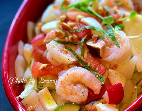 聖塔塔沙拉,食材顏色搭配得很好看,淋的是油醋汁,開胃清爽。還有好幾款值得期待的新品,等著下回來拔草