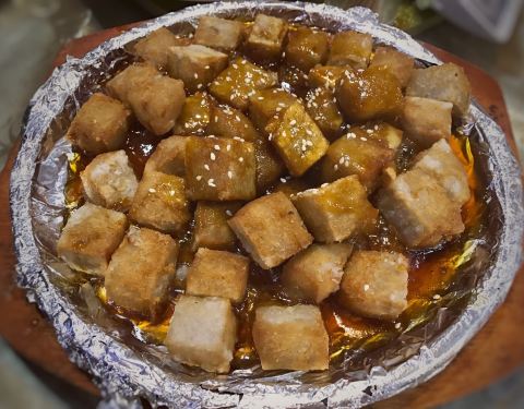 ⭐️海之宴靠近嘉庚故居附近,餐厅门口有个很大的院子,不仅好停车,而且还有户外的茶室,可以坐着泡茶聊天,相当安逸。 👉🏻鲍鱼沙拉里既有蔬果沙拉,还有鲍鱼。沙拉和鲍鱼的混搭,虽然看起来有点违和,但是吃起来绝对让人幸福满满。 👉🏻干煎鸡是店里的一大人气菜品,味道有点类似姜母鸭,但是干煎的味道会更香,表皮也更焦脆。令人出乎意料的是,里面包裹着的鸡肉却鲜嫩多汁。 👉🏻对贝类情有独钟的我,很喜欢吃爆炒油蛤。经过爆炒的油蛤非常入味,鲜美Q弹的口感也让人忍不住一直下筷。 👉🏻鱿鱼和豆腐一直以来都是铁打的CP,铁板海鲜豆腐用的是日本豆腐,经过铁板的高温,鱿鱼的鲜味早就释出来,吸收了海鲜鲜味的豆腐,鲜嫩爽滑。 👉🏻江西炒粉的米粉一定要用粗粉,筋道有韧性,但依然入味。老板给料给的很实在,一起用餐的小伙伴打趣说这配料下的比粉还多。 👉🏻来自江西的特色小吃锅边馍,样子很像大型的蝌蚪,头尾的口感大不相同,前面的部分非常绵密,有点像鸡蛋仔,而尾部吃起来很香脆。 ⭐️海之宴装修的像酒楼,消费却是排档的水平,性价比真的非常高。