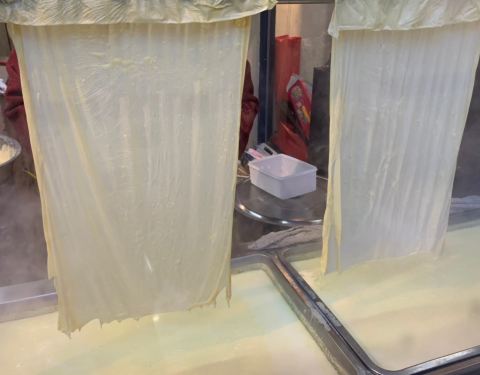 有个自家院子可以停车,有种宾至如归的感觉。 [环境]位于大路边上,大招牌很显眼,大院子停30辆车也没有难度。 里面座位很多,布置也很有特色,不管小聚或是商务宴请,总有合适的。 [服务]透明厨房里的阿姨很热情,一直介绍豆浆豆皮还有新品锅边馍,当然还有煎鸡。 「香煎鸡」大盘鸡上来,焦黄的色泽,诱人的香气,忍不住来只大解解馋。 「文蛤豆腐汤」砂锅煮出来的汤,就是更有味,特别鲜美。 「锅边馍」在广州吃过一次,这次的更有特色,尾巴焦香脆,头部又蓬松软嫩,玉米面儿的香味。 「腐竹」新鲜腐竹,透明橱窗里看阿姨刚挑起来的,比较新意的吃法 「豆浆」现磨豆浆,好久没喝到这么醇正浓厚的味了,两个人喝了一扎和一锅汤。