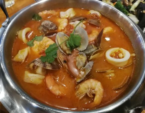 今天之前的同事休息约吃饭,我和她相约来到位于浔江路的一栋别墅房子海之宴,海中的宴席。一入大厅映入眼帘整个餐厅的布置就非常的高大上。上餐速度也非常快。服务员介绍他家的招牌我们点了蒸扇贝,清蒸鲈鱼,清甜的花蛤蜊汤。喜欢他的鲈鱼个头大,分量很足,也蒸的十分鲜美。不过杂菜煲不是很喜欢就是其他都可以。