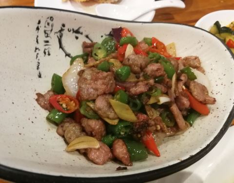 深圳同事过来出差,想着安排上,不知道吃啥,看到这家离他们住的近就团购了双人餐,有花蛤汤,鲈鱼,芽菜煲与扇贝粉丝再加个辣椒炒牛肉,沙茶三鲜,沙茶口味很正,虾与鱿鱼都很新鲜,忍不住多吃了一碗米饭,同事都评价比之前几次吃的好,哈哈!重点是有个超大停车场,不用担心停车问题