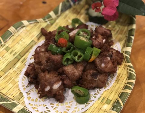椒盐排骨,我在想厨师会不会被骂,菜的份量都很多啊,这排骨块头个个巨大,好吃就算了,量还辣么多哈哈