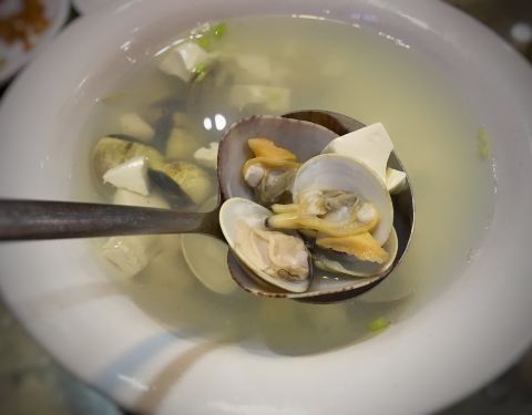 闺蜜家附近的海鲜酒楼,被安利来吃的,两个妹子买了个双人团购券,吃得饱饱的! 最满意的就是他们家自带一个大院子,免费停车,有划线,很科学,就是不要钱,太壕了。真羡慕岛外人民!地广人稀! |文蛤豆腐汤^加了...